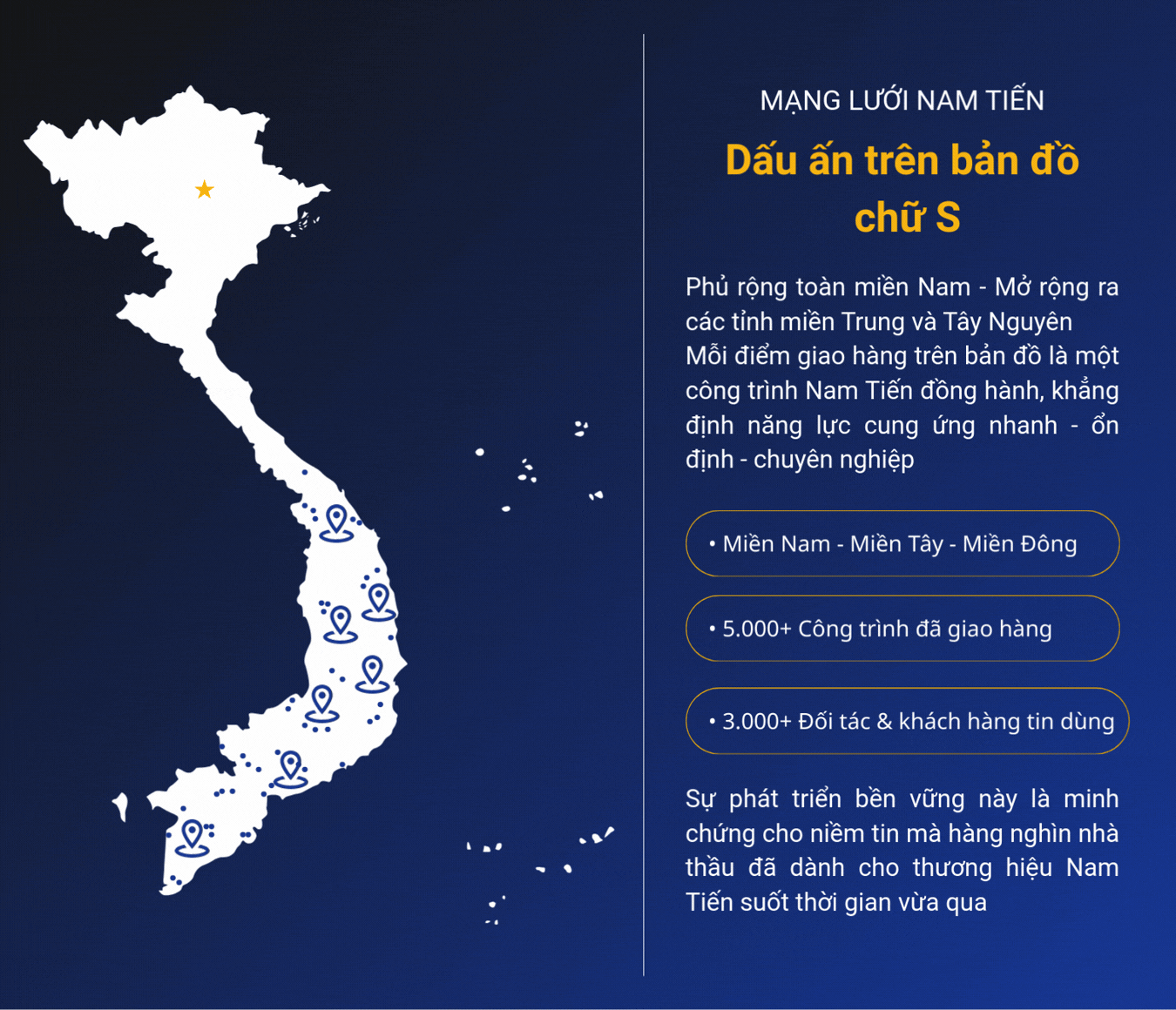 Kiên định với triết lý “chất lượng làm nên thương hiệu” Nam Tiến hướng đến mục tiêu đồng hành cùng các đơn vị thi công trong hành trình tạo nên những công trình an toàn và bền vững.